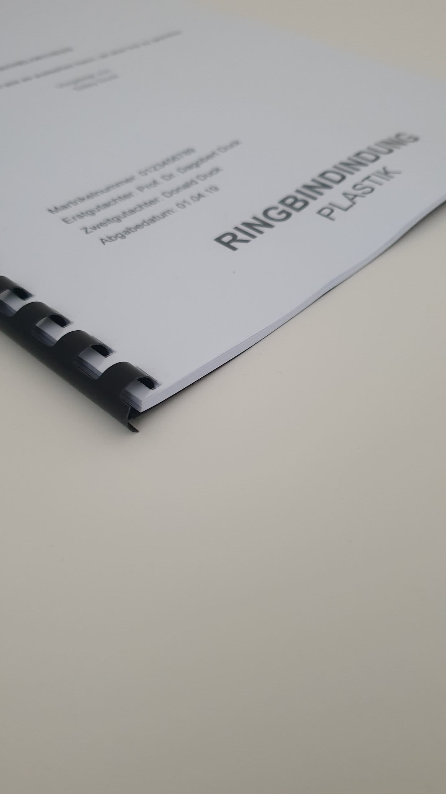 Abschlussarbeit | Plastik-Spiralbindung bis 200 Seiten | bedrucktes Cover