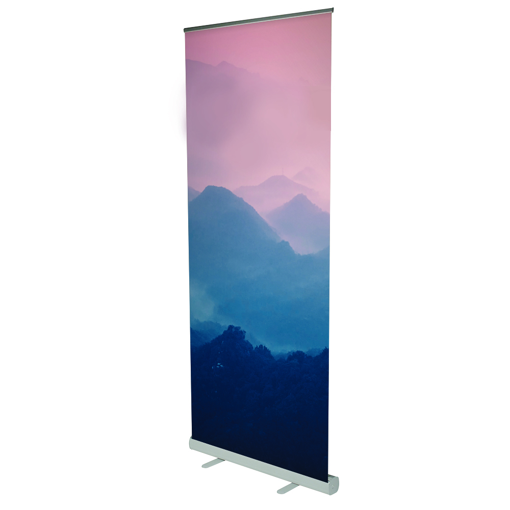 Mit dem Roll-Up Banner Budget von Rang Sofortdruck in Oldesloe bei Hamburg, Bad Segeberg, Kiel, Lübeck erhalten Sie ein Banner aus der Basic-Reihe. Dieser ist Silber eloxiert und kommt mit zwei ausklappbaren Füßen sowie einer Klemmschiene daher. Auch für Messen, Events, Ausstellungen, Werbeaktionen und Ähnliches eignet der Roll-Up Banner sich ideal, denn er kann einfach und bequem in der mitgelieferten Transporttasche transportiert werden.