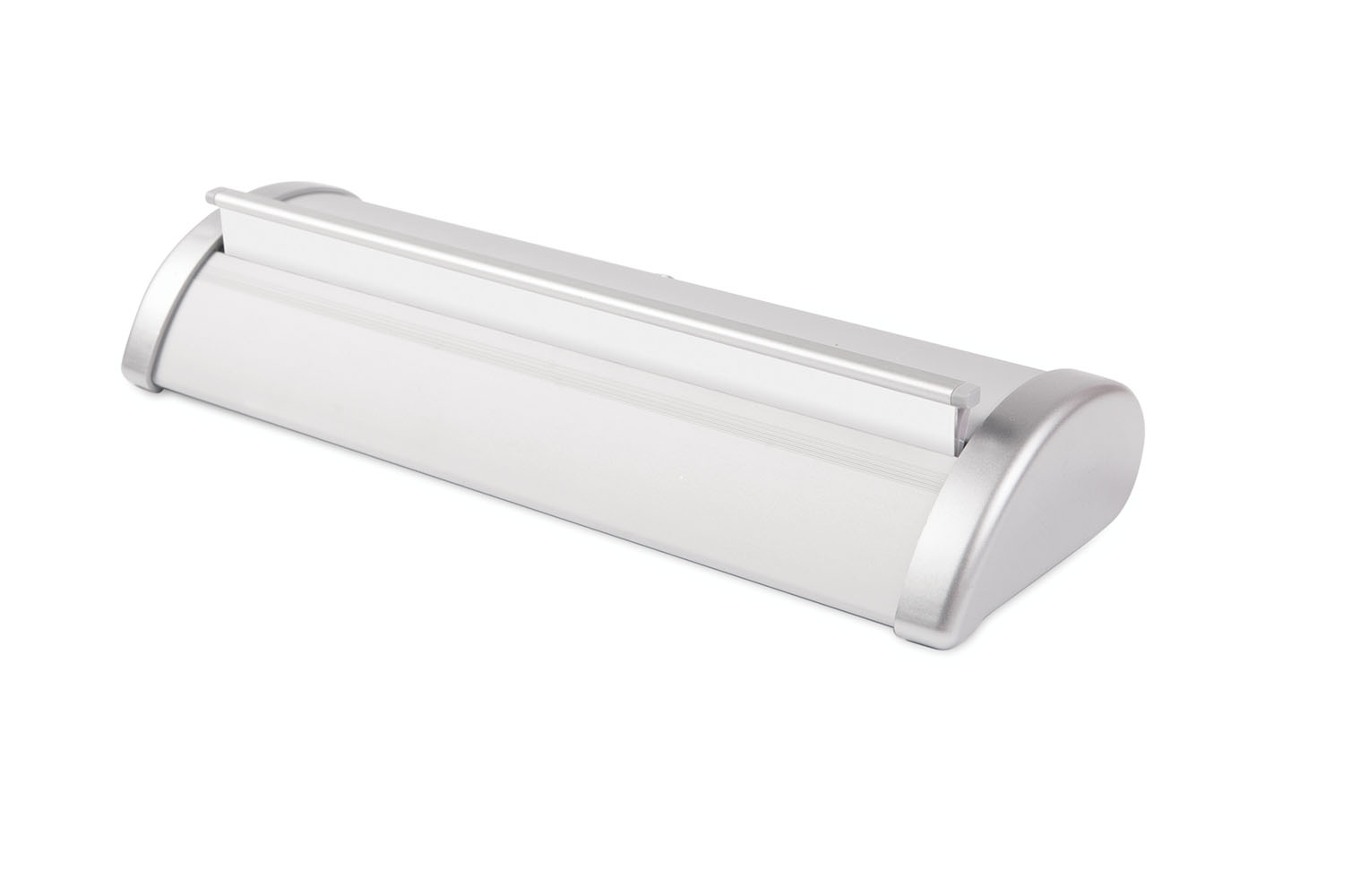 Das Roll-Up Mini ist kompakt und daher ideal, um Ihre Werbebotschaft auf Ihrem Schreibtisch, einer Theke oder einer Vitrine zu präsentieren und in den Mittelpunkt zu stellen. Das Rollbanner ist platzsparend, gleichzeitig aber auch sehr effektiv. Auch als Werbegeschenk für Ihre Kunden ist es wegen seiner kleinen Größe ideal geeignet.