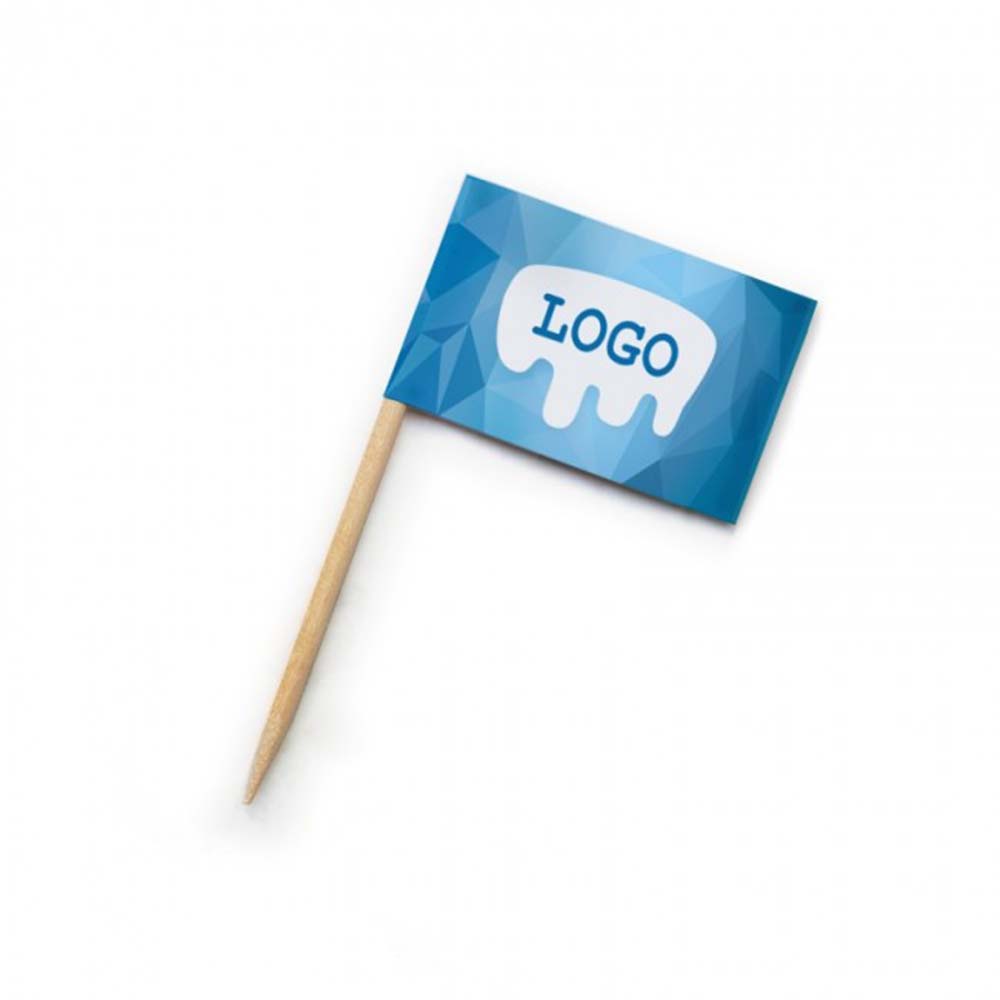 Zahnstocher mit Fähnchen | ca. 7 cm | beidseitig bedruckt von Rang Sofortdruck aus Oldesloe bei Hamburg, Bad Segeberg, Kiel, Lübeck mit Ihrer Werbung oder Ihrem Logo bedruckt.