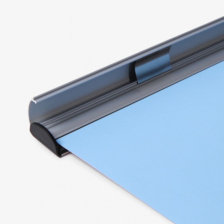 Posterschiene aus Aluminium mit 25 mm Profil von Rang Sofortdruck aus Oldesloe bei Hamburg, Bad Segeberg, Kiel, Lübeck. Moosgummibeschichtung zur Fixierung Ihrer Plakate, optional mit verschiedenen Abhängesystemen.
