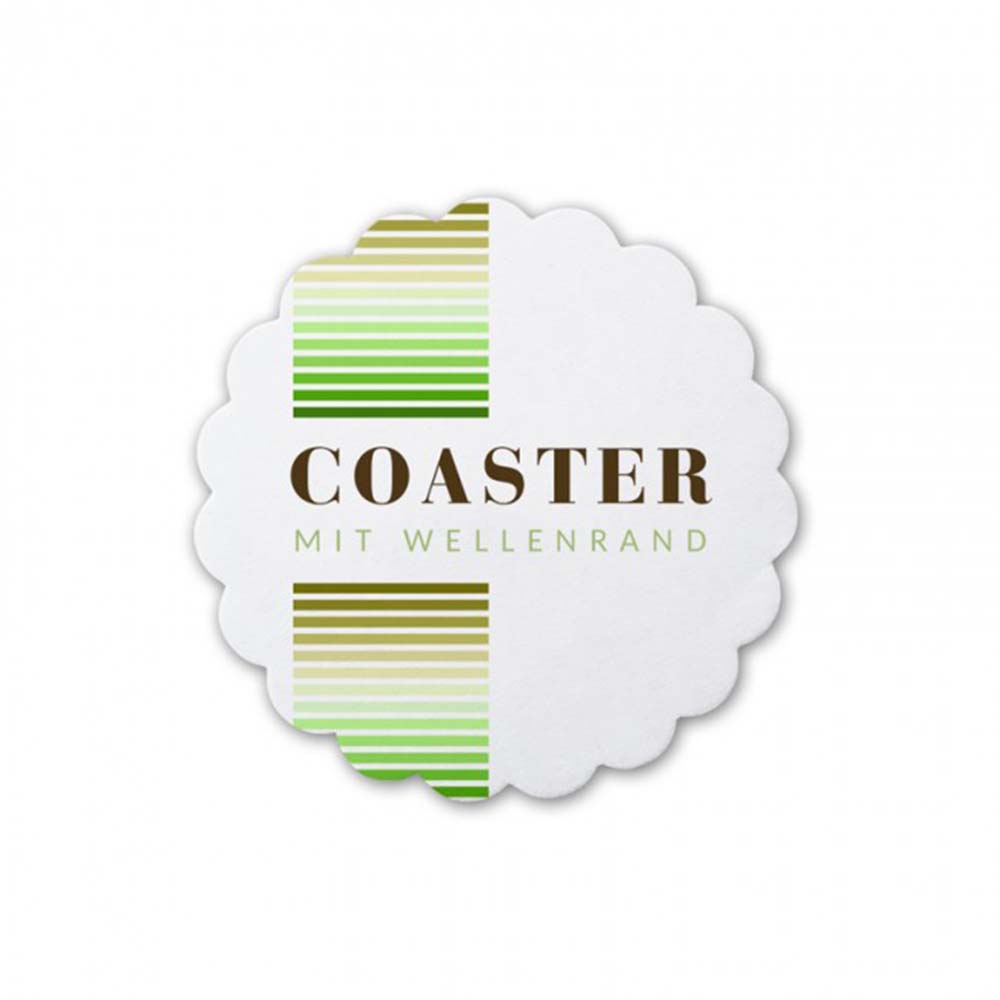Getränkeuntersetzer aus Airlaid | D 9 cm rund mit Wellenrand | einseitig bedruckt