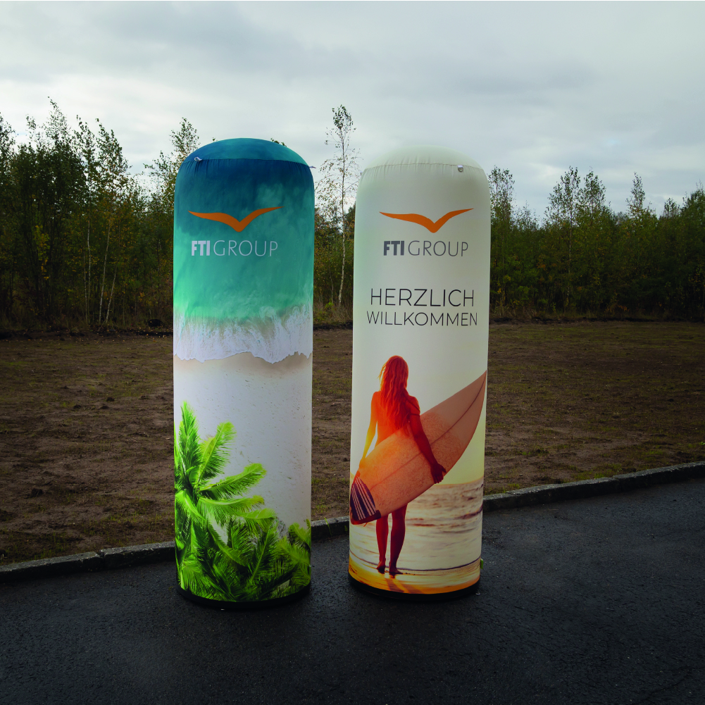Aufblasbare Werbesäule pneumatisch (D 67 cm x H 200 cm) bedruckt in Oldesloe bei Hamburg, Bad Segeberg, Kiel, Lübeck bei Rang Sofortdruck