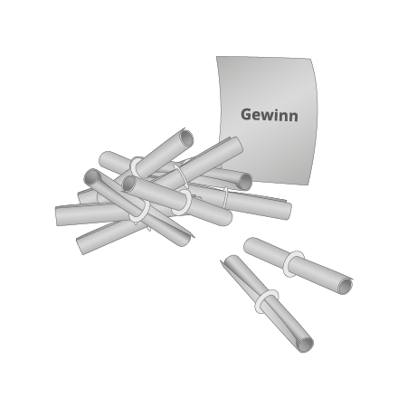Schon fast 100 Jahre alt, aber noch immer Bestseller - die Röllchenlose von Rang Sofortdruck in Oldesloe bei Hamburg, Bad Segeberg, Kiel, Lübeck. Das liegt sicher an ihrer Einfachheit, am Rascheln in der Losbox und an der Spannung beim Öffnen der Lose.