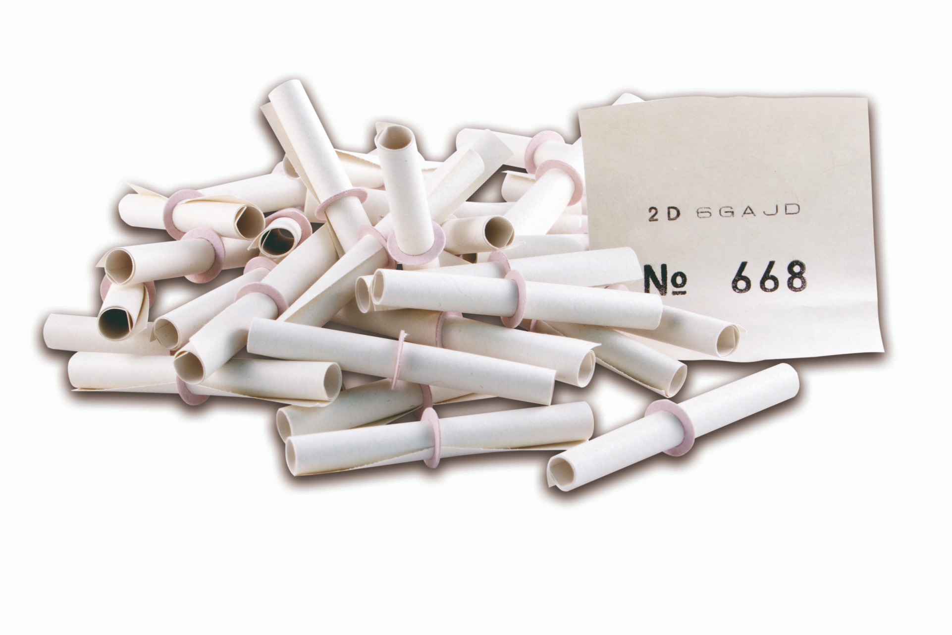 Schon fast 100 Jahre alt, aber noch immer Bestseller - die Röllchenlose von Rang Sofortdruck in Oldesloe bei Hamburg, Bad Segeberg, Kiel, Lübeck. Das liegt sicher an ihrer Einfachheit, am Rascheln in der Losbox und an der Spannung beim Öffnen der Lose.