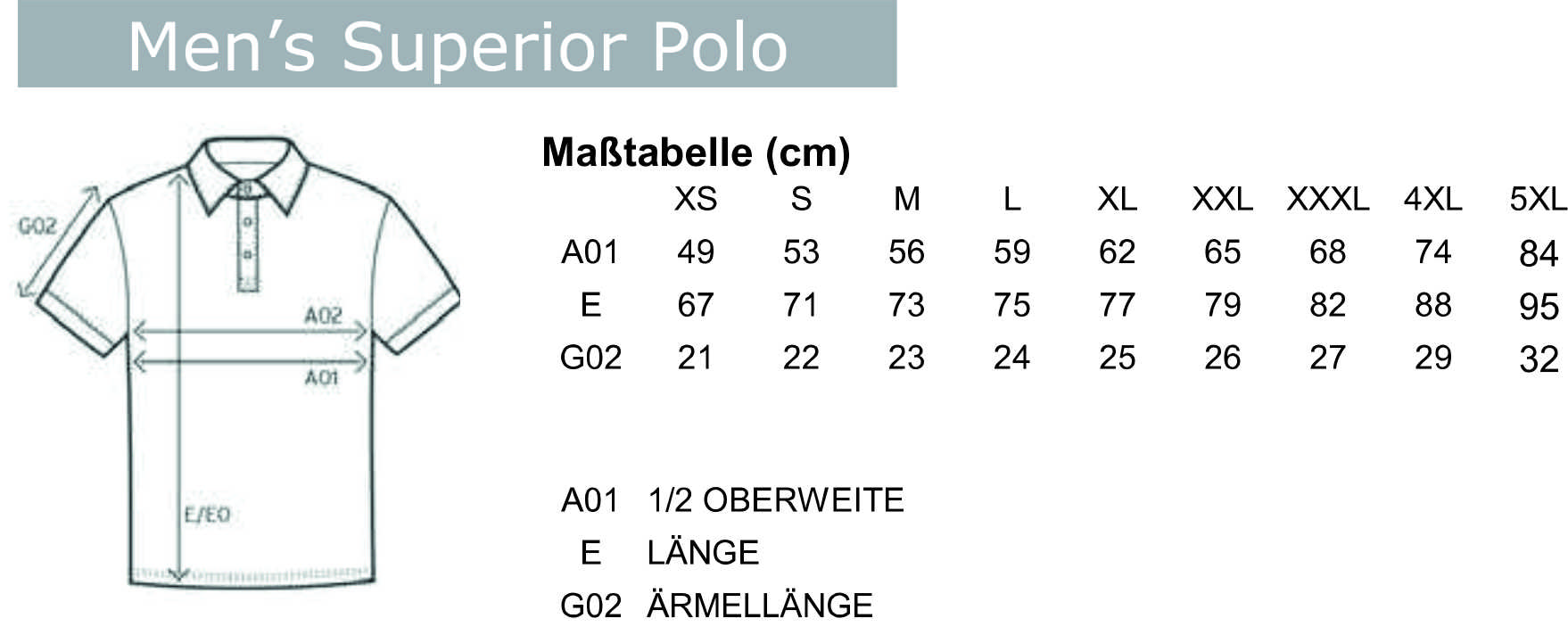 Unser Poloshirt Superior ist hochwertig verarbeitet, modern geschnitten mit Knopfleiste, 3 Knöpfe Ton in Ton, offenen Armabschlüsse sowie Seitenschlitze.